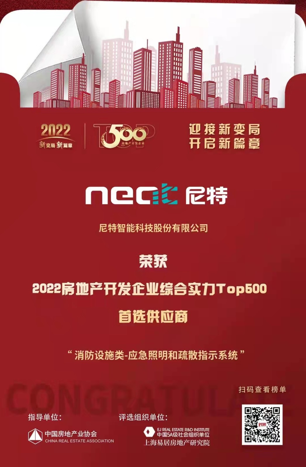 恭喜尼特連續(xù)五年獲評500強(qiáng)地產(chǎn)首選供應(yīng)商殊榮!!智能疏散品類位列榜首!??!